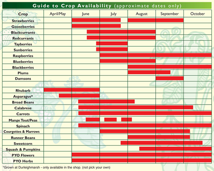 Below is a guide to when PYO crops are available, but it’s always best to check with them before turning up.