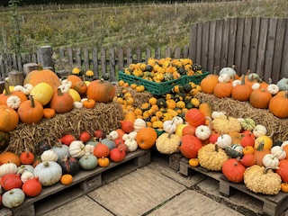 These photographs, taken last autumn, show the most eye-catching display of pumpkins that Lesley came across when delivering to our retailers that month. Quite stunning!